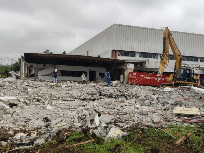 Demolição mecanizada de estruturas em concreto e alvenaria com remoção de todo entulho para bota fora legalizado.