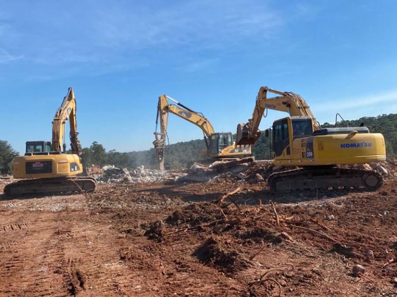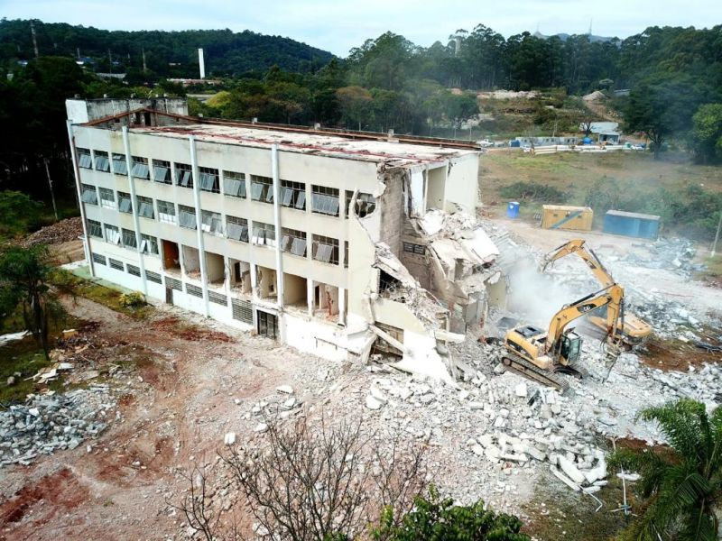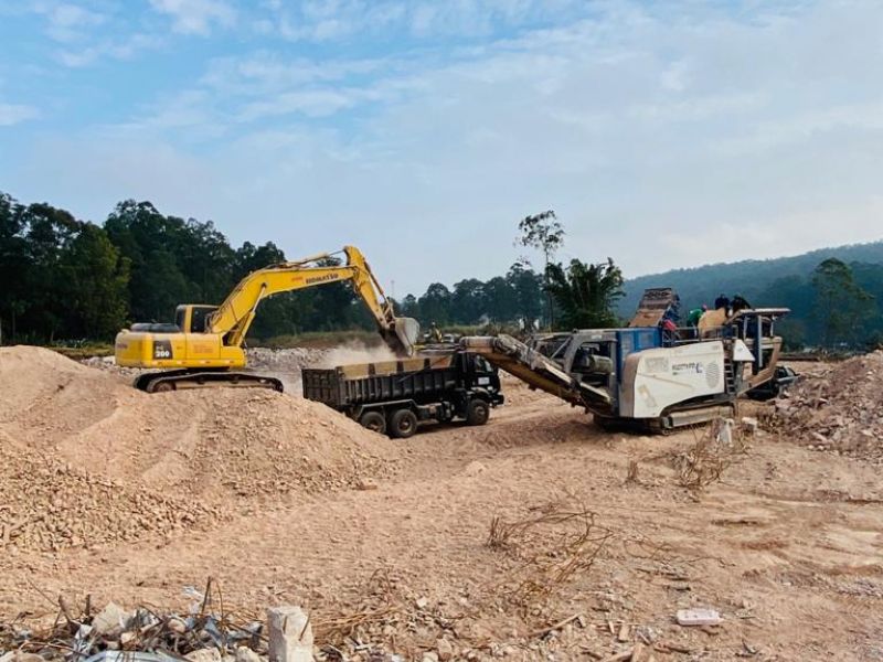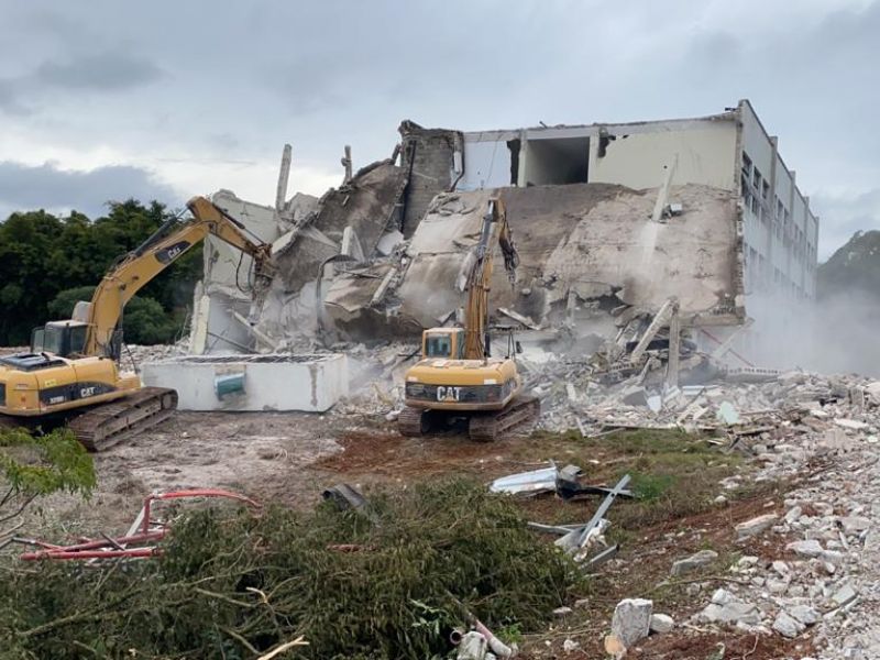 Desmonte convencional e controlado de galpões, demolição mecanizada de predios em concreto e alvenaria. Demolição de pisos, badrames e blocos de fundação em concreto. Demolição de caixa de água elevada com +ou- 50 mts de altura. Remoção de pedras, paralelepipedos. Britagem de todo os materiais inertes como alvenaria e concreto para reutilização no proprio canteiro de obra
